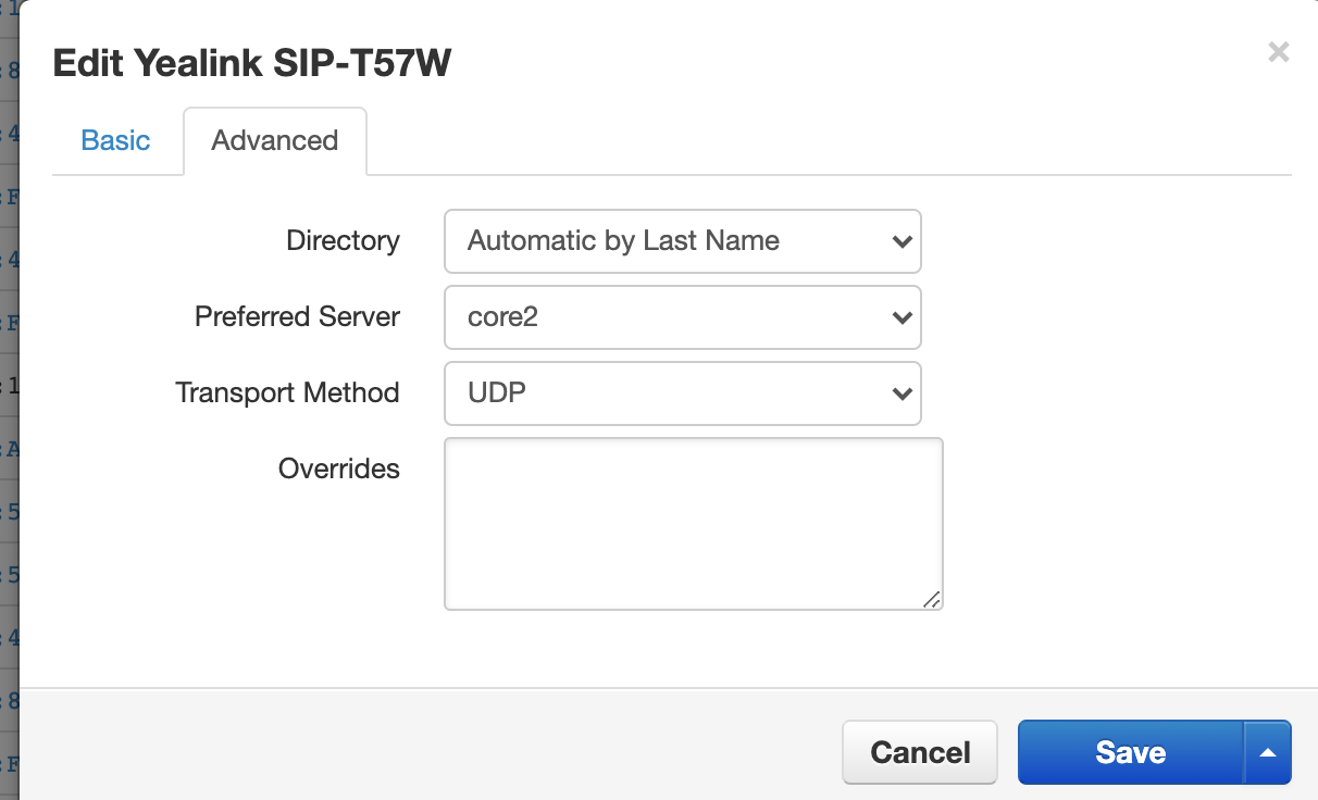 All Overrides must be done in the Manager Portal (OMP). Overrides can be added directly to a phone, device template or a Site..